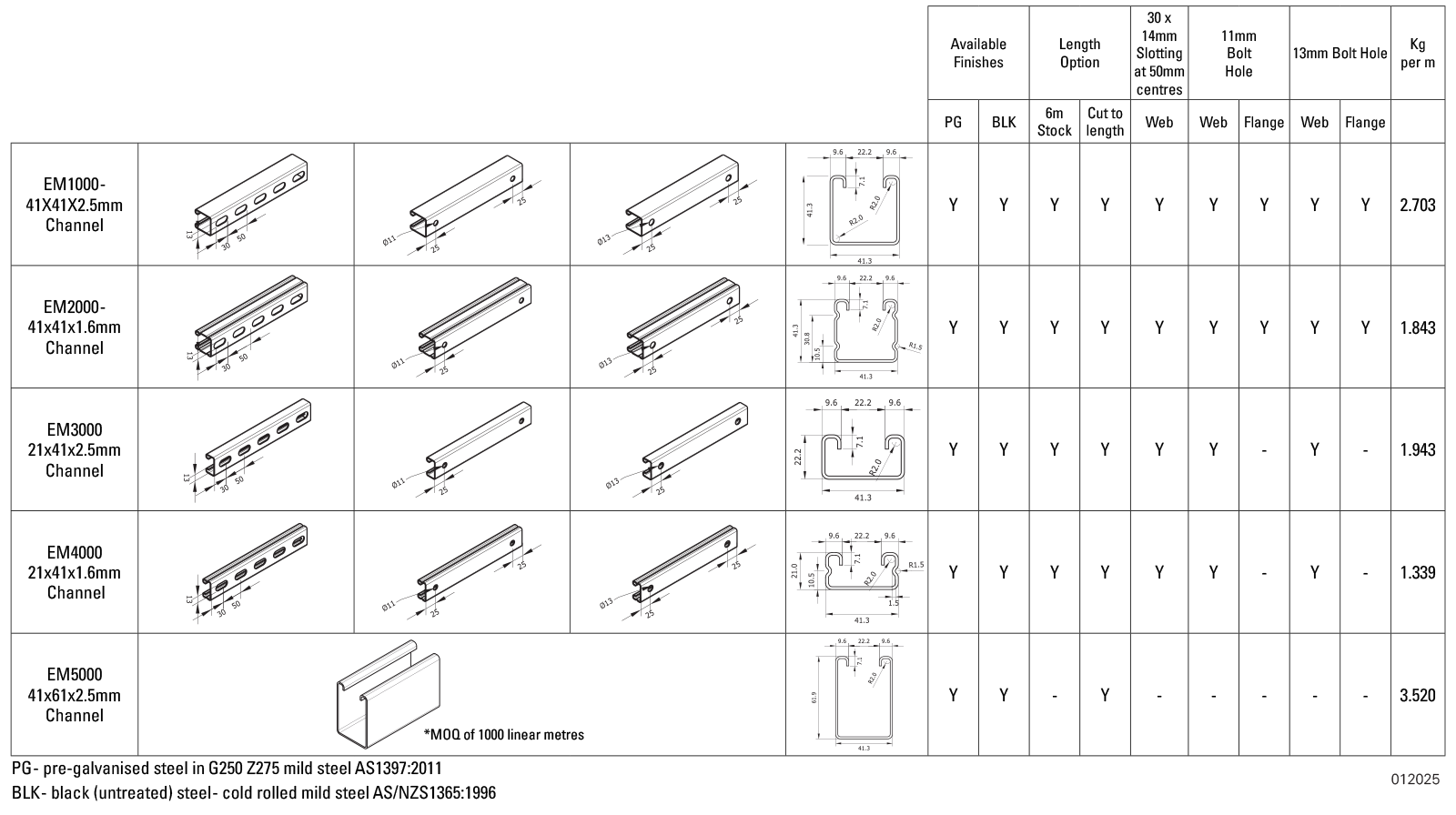 Struts is available in two finishes - pre-galvanised (PG) or black (BLK) steel